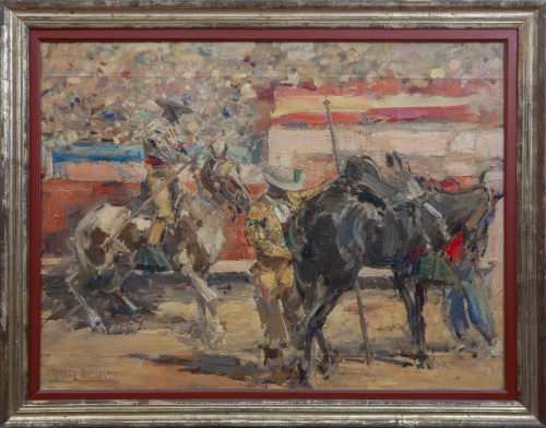 Firmado, titulado, localizado e incrito en el bastidor: ROBERTO DOMINGO-GOYA 36. (ESTUDIO) SAN AGUSTÍN, 13 ] Nº1 "MÁRTIRES MODOS"/MADRID ] "MARTYRS MUETS"