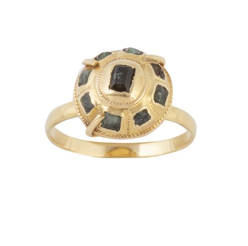 14. Sortija S. XIX rosetón de esmeraldas en forma de botón