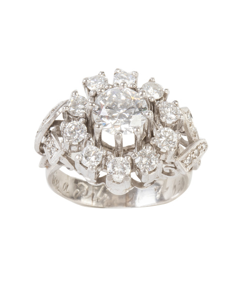 Home / SUBASTA DE JUNIO 2024 / Sortija rosetón de brillantes años 50 con brillante central