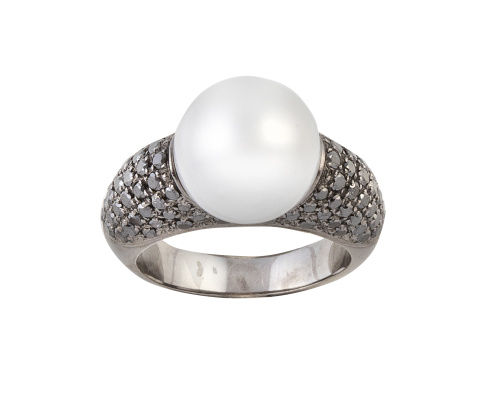 236. Sortija con perla central en montura cuajada de brillantes negros