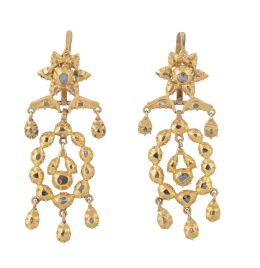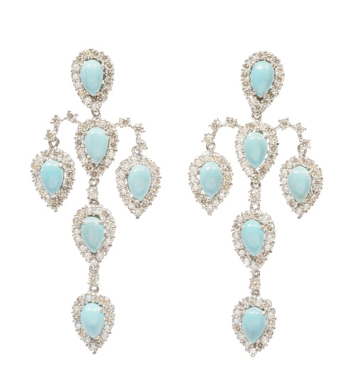 Home / SUBASTA DE JUNIO 2024 / Pendientes largos chandelier de turquesas y brillantes, con