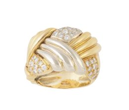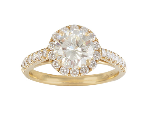 298. Sortija con solitario de brillante central de 1,54 ct orlado de brillantes y con brillantes decorando los brazos de la montura