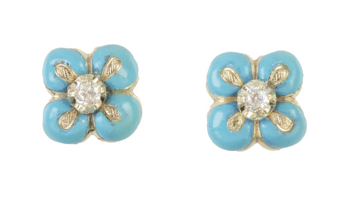 Home / SUBASTA DE JUNIO 2024 / Pendientes flor de esmalte azul con centro de brillante