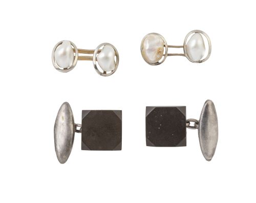 325. Lote de dos pares de gemelos de pp. S. XX, en plata unos con perlas, otros azabache cuadrado