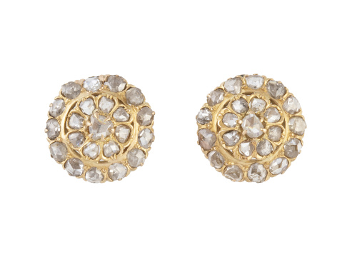 Home / SUBASTA DE JUNIO 2024 / Pendientes de ff. S. XIX de rosetón de diamantes talla rosa