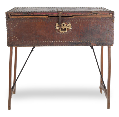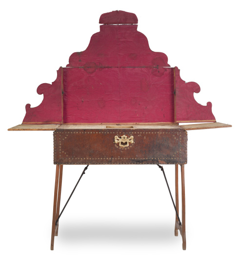 528. Altar de viaje con alma de madera encorada, tachonada.