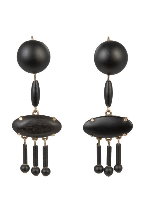 Home / SUBASTA DE JUNIO 2024 / Pendientes largos S. XIX de piezas de azabache de diferente