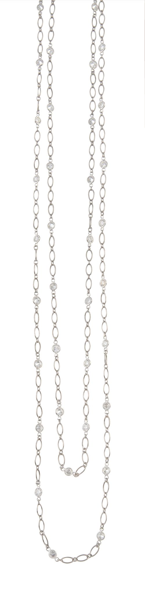 Cadena larga TIFFANY & Co con cuarenta chatones de brillantes alternos con tramos de estilizada cadena