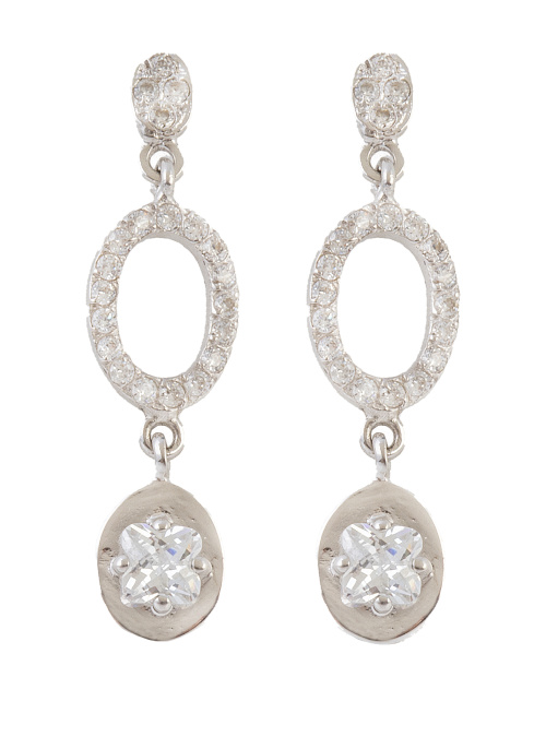 88. Pendientes largos con con circonitas en aro y botón colgante