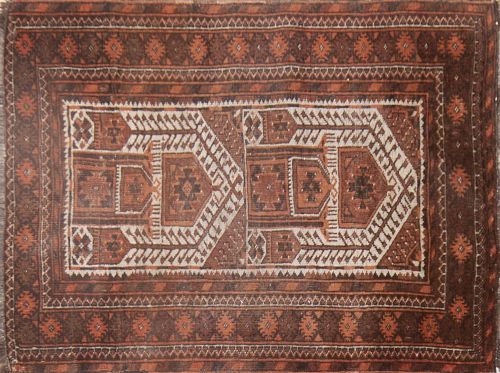 1106. Alfombra paquistaní en lana de decoración geométrica de campo marrón y blanco.