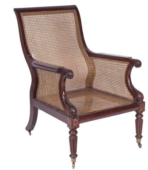 1166. Butaca de despacho regencia de madera de caoba y asiento cané.