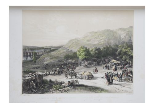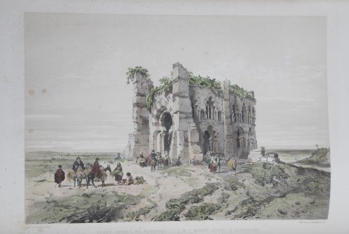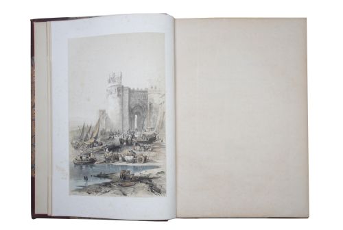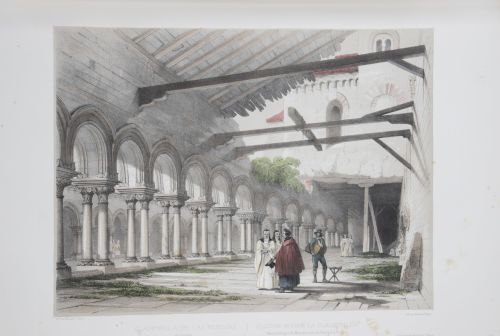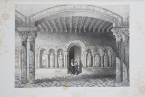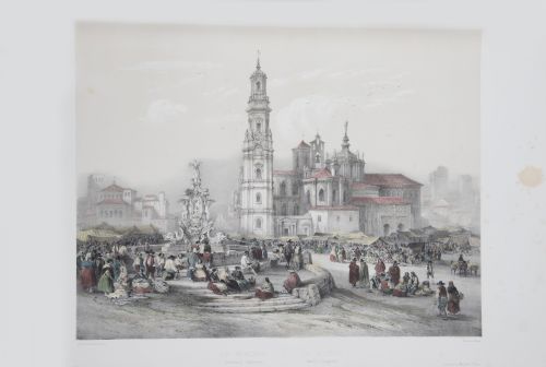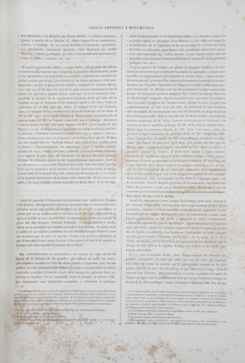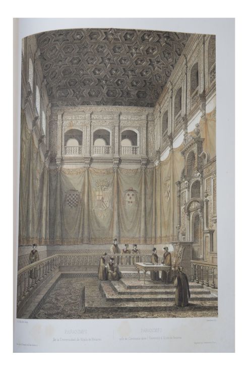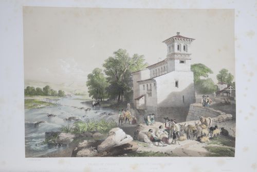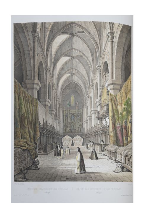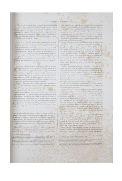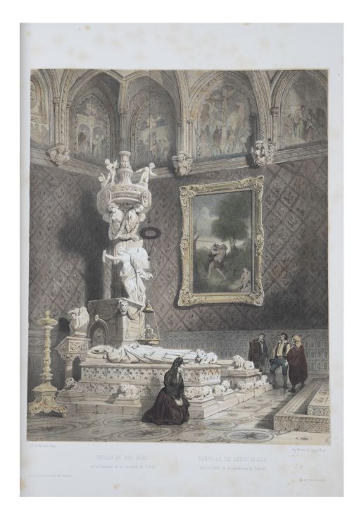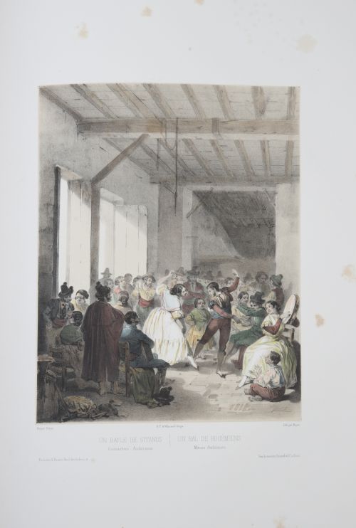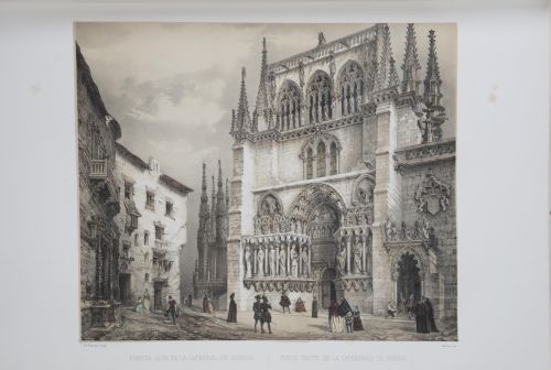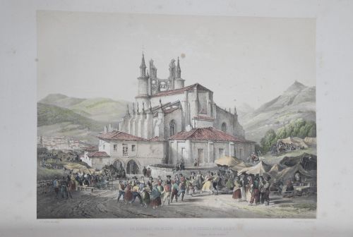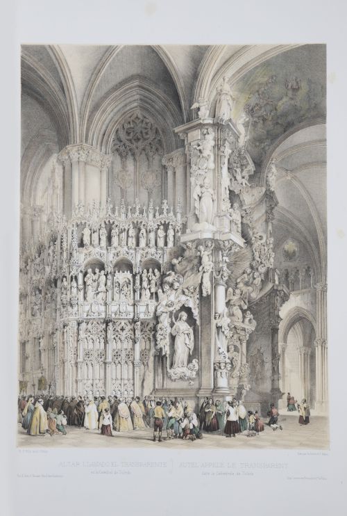 Con el aire romántico habitual en las obras europeas similares, Pérez Villaamil presenta la riqueza monumental de España aportando a los paisajes urbanos los toques costumbristas de la amplia variedad de tipos españoles del siglo XIX. Trabajaron en al estampación veintitrés litógrafos franceses y un español; a pesar de esa variedad de manos y las licencias interpretativas respecto a los originales, el conjunto resultó plenamente uniforme gracias a la buena dirección de Pérez Villaamil. Ref.: Palau: 222728.