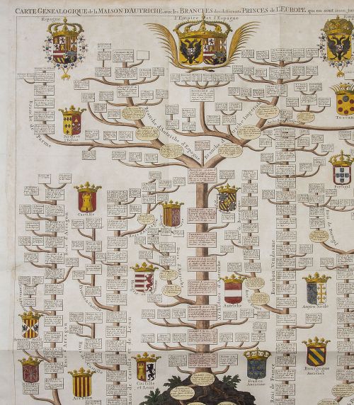 "Carte genealogique de la Maison d´Autrice avec les branches des differents Princes de l´Europe qui en sont issus jusqu´es a l´An 1707".