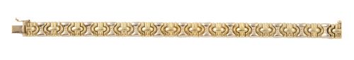 127. Pulsera articulada de piezas gallonadas en oro bicolor