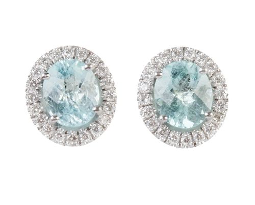 139. Pendientes de turmalina paraiba oval orlada de brillantes