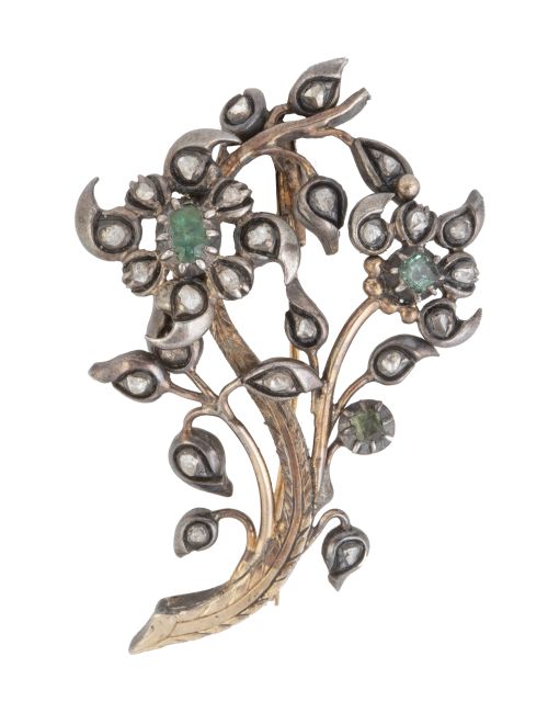 15. Broche floral S. XIX de brillantes y esmeraldas