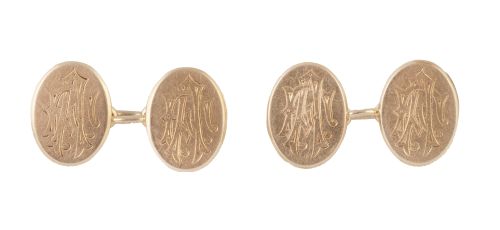 Gemelos dobles de pp. S. XX de placas ovaladas con iniciales grabadas