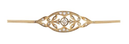 19. Broche S.XIX con centro de diseño ojival, con decoracion calada adornado con zafiros blancos
