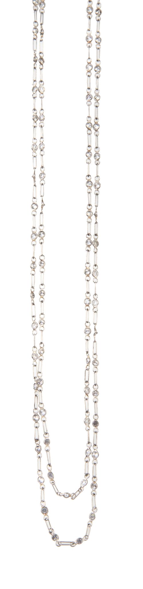 221. Collar largo de cadena de platino alterna con chatones de brillantes