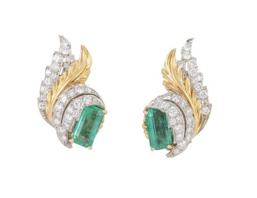 Home / SUBASTA DE OCTUBRE 2024 / Pendientes años 50 de esmeraldas rectangulares, con hojas d