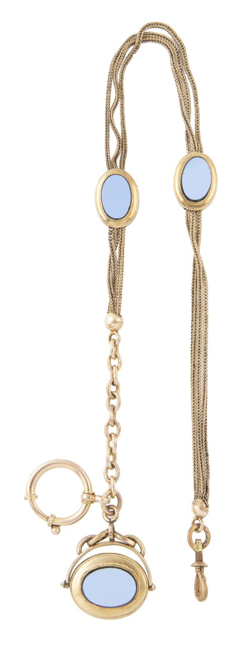 Leontina S.XIX de cordón trenzado, con pasadores y sello sin grabar colgante de ágata bicolor