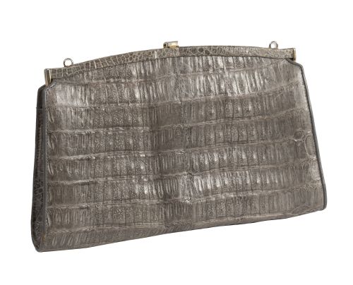 357. Bolso vintage de piel de cocodrilo, tipo clutch, con un asa, color gris