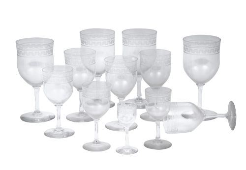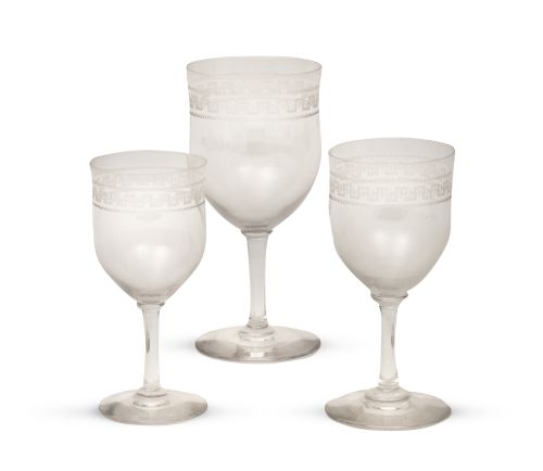 Juego de copas de cristal con cenefa grabada de guilloca.