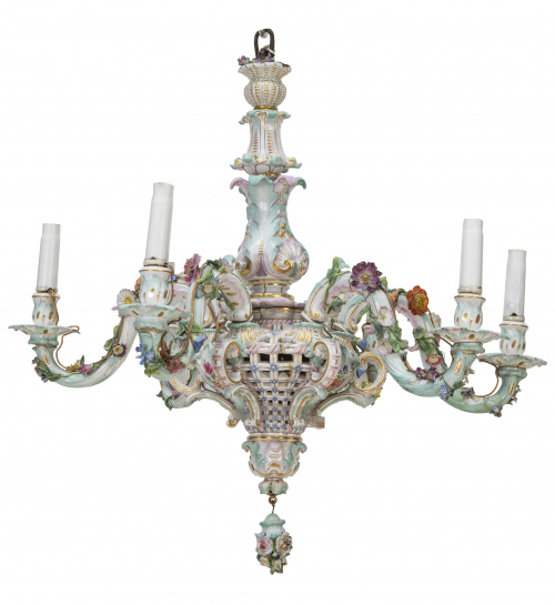 Lámpara de porcelana esmaltada de seis brazos de luz.
