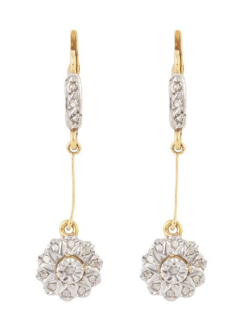 Home / SUBASTA DE OCTUBRE 2024 / Pendientes largos con rosetón de diamantes que penden de ba