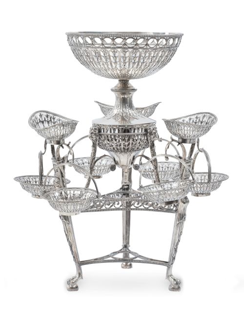 Home / SUBASTA DE OCTUBRE 2024 / "Epergne" Jorge III de plata cincelada, calada y moldeada,