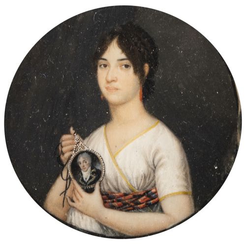 Retrato de María Eugenia Miñano y Ramírez, portanto una miniatura con el retrato de Antonio Domingo de Porlier y Sáenz de Asteguieta, III Marqués de Bajamar
