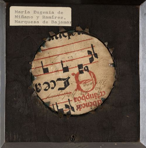 En el reverso con inscripción antigua a tinta: "Sra. Dña Ma. Eugenia Miñano" y etiqueta inscrita a máquina: "María Eugenia de Miñano y Ramírez, Marquesa de Bajamar".
