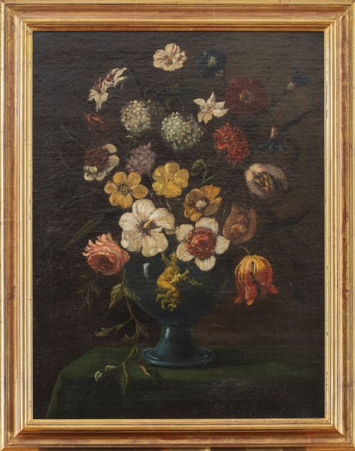 Home / SUBASTA DE OCTUBRE 2024 / ESCUELA ESPAÑOLA, h. 1700Jarrón de flores sobre un pedest