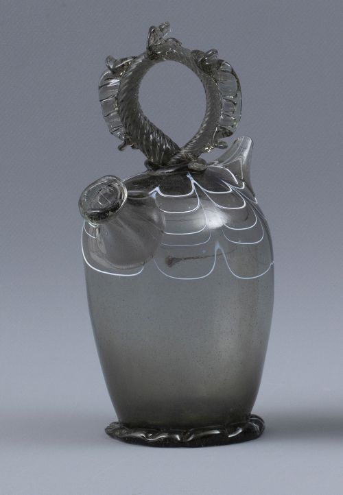 Home / SUBASTA DE OCTUBRE 2024 / Botijo o cantir de vidrio transparente con hilos blancos.