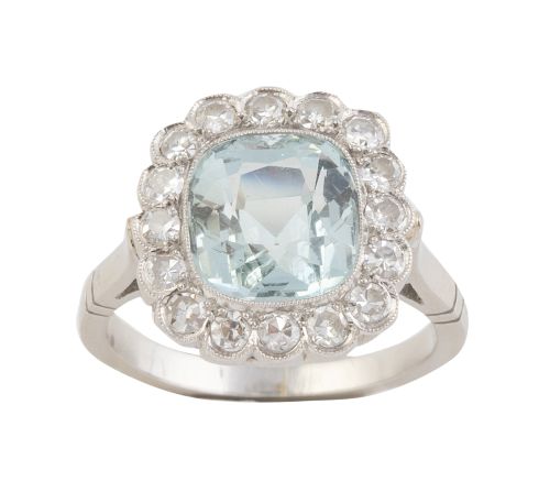 109. Sortija años 30 con aguamarina central rodeada por orla lobulada de brillantes