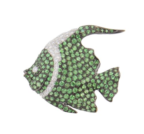 237. Broche pez cuajado de tsavoritas con banda central de pavé de brillantes
