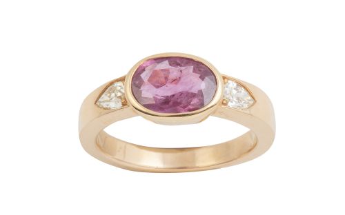 247. Sortija con rubí oval flanqueado por dos brillantes