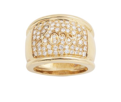Sortija ancha con rectángulo con pavé de brillantes sobre la que destaca inscripción "Love" en relieve