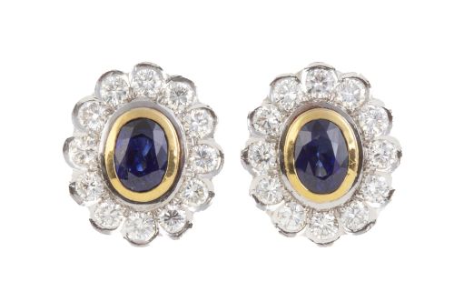 275. Pendientes de zafiros ovales orlados de brillantes en oro bicolor