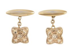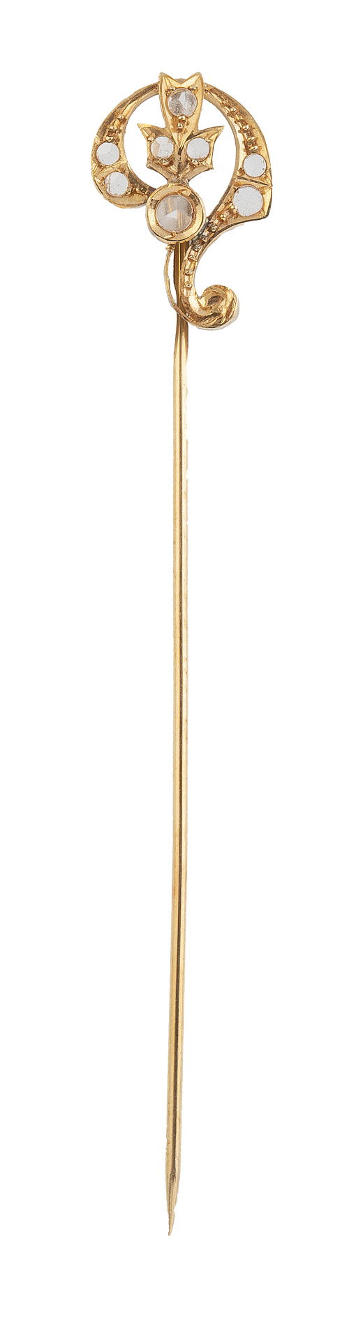 Broche de pp. S. XX con diseño de roleo vegetal de zafiros blancos