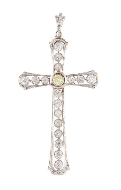 335. Cruz colgante Art-Decó de brillantes con decoración calada en los brazos