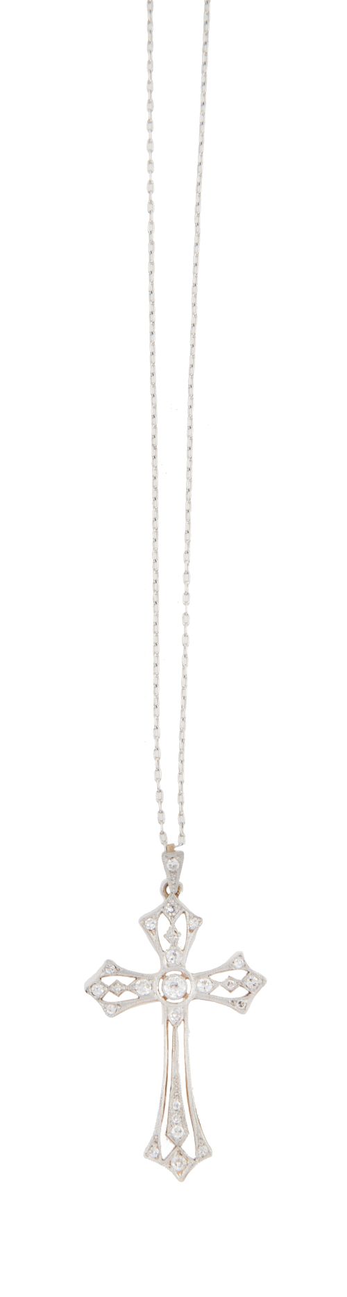 Home / SUBASTA DICIEMBRE 2024 / Cruz colgante Art-Decó de brillantes, con decoración calada