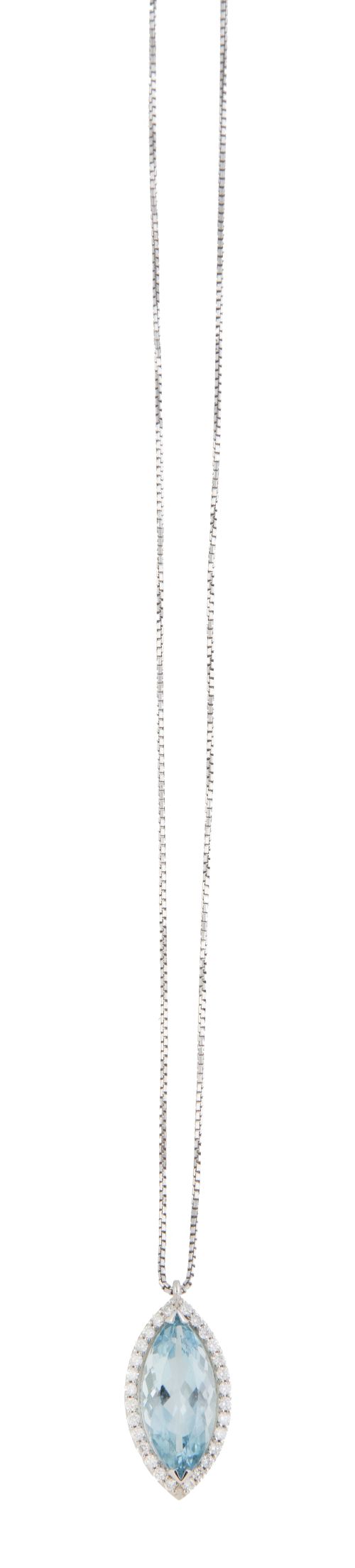Colgante con aguamarina talla marquise de 6,26 ct orlada de brillantes, con cadena fina