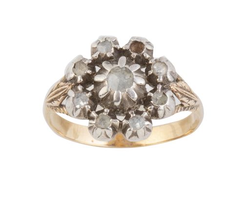 44. Sortija rosetón de pp. S. XIX con diamantes