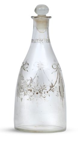 De cuerpo ovoide con marcada carena y cuello que se estrecha, la tapa, rematada por una piña, los brazos forman roleos, decorados con juncos y guirnaldas de flores, el pie con flores en las esquinas. El sello* de las tapas se utilizó desde 1860 hasta 1936.