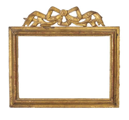 Home / SUBASTA DICIEMBRE 2024 / Marco de madera tallada y dorada rematado por lazo.S. XIX.