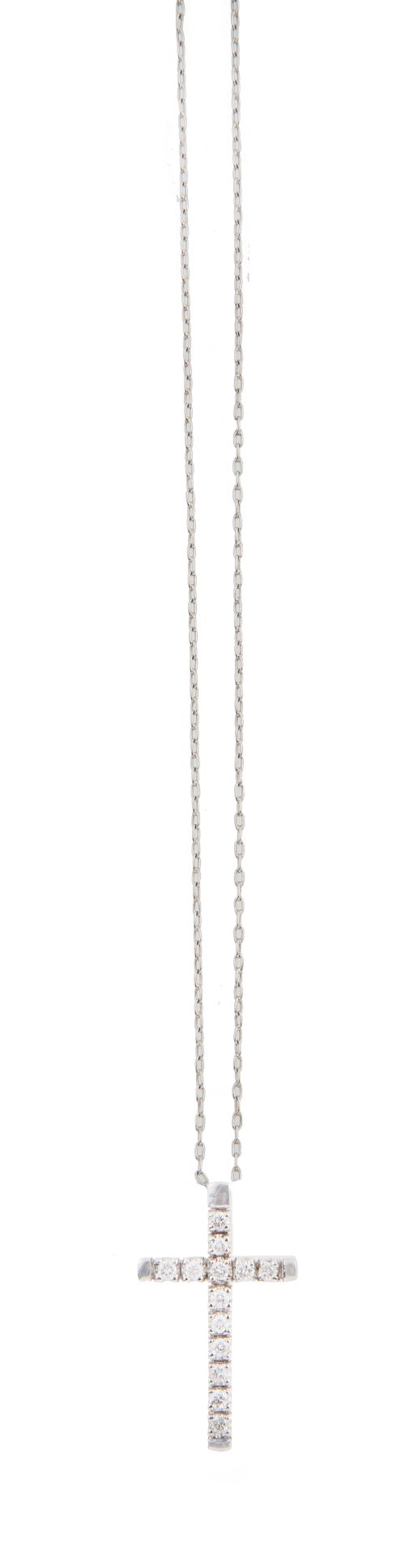 93. Cruz colgante de brillantes con cadena fina de platino