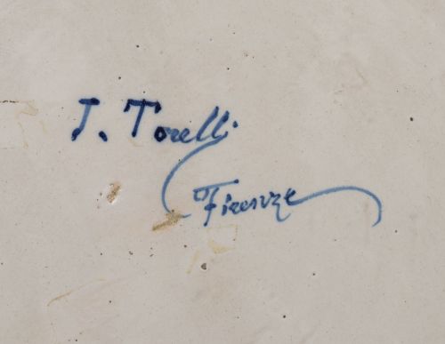 Torelli trabajó para la fábrica de Ginori y en el año 1873 fundó su propia fábrica en Florencia. En el Museo Victoria y Alberto de Londres, se conserva un plato de Torelli, sala 139.