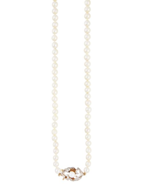 124. Collar largo de un hilo de perlas de tamaño graduado hacía el centro