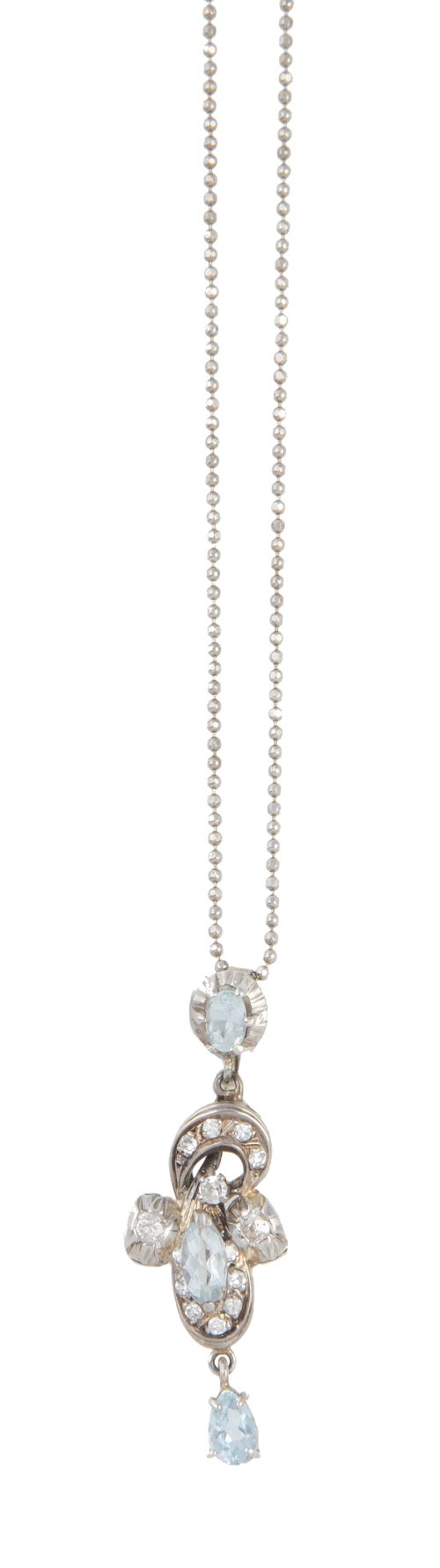 Home / SUBASTA MARZO 2025 / Colgante de aguamarinas y brillantes de pp. de S. XX